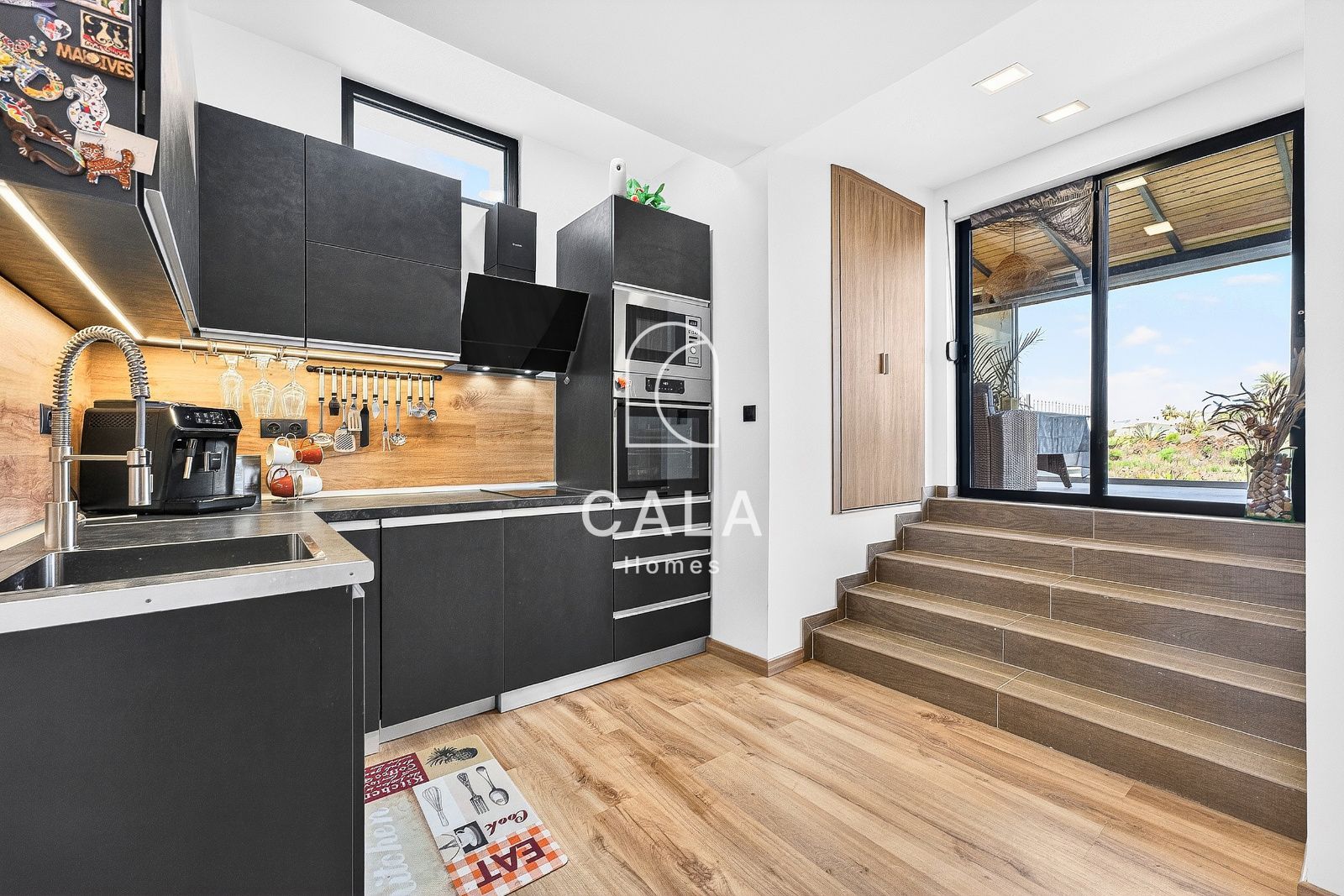 La vivienda principal cuenta con dos amplios dormitorios y dos baños completos, además de un aseo de cortesía, una cocina totalmente equipada y un luminoso salón. Sus generosas zonas de estar y grandes terrazas con impresionantes vistas al océano crean el entorno perfecto para disfrutar del clima privilegiado de la isla durante todo el año