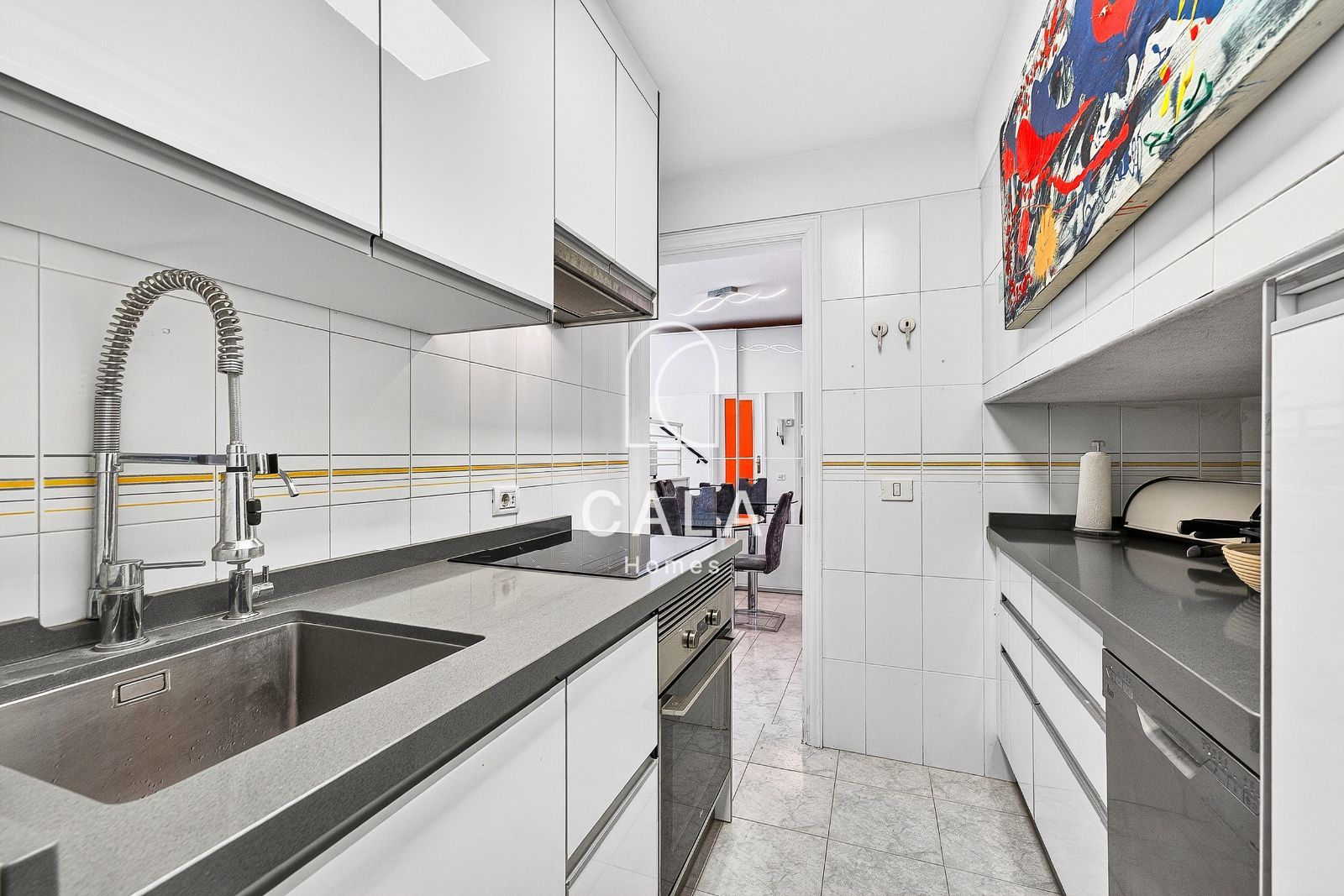 La cocina, totalmente equipada, ha sido diseñada para combinar practicidad y estética, adaptándose tanto a la rutina diaria como a momentos especiales. El baño, espacioso y con bañera, invita al descanso y al bienestar.