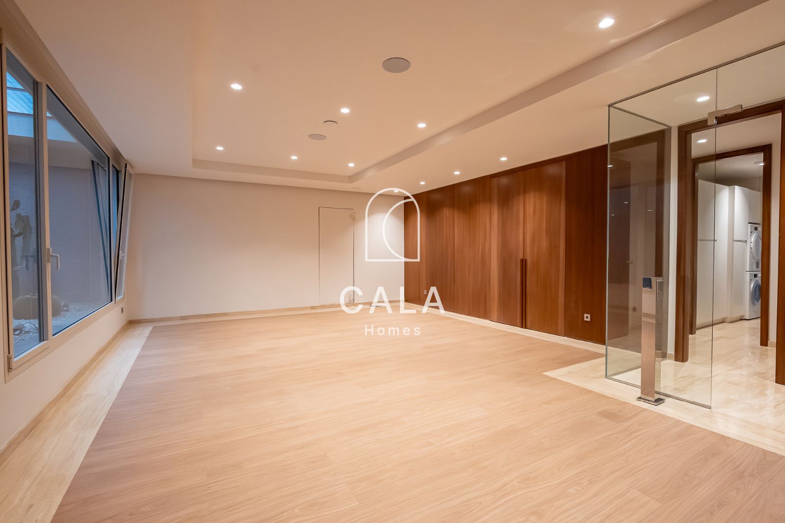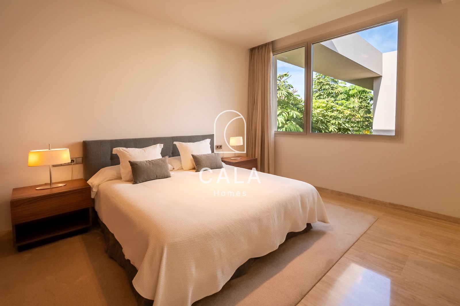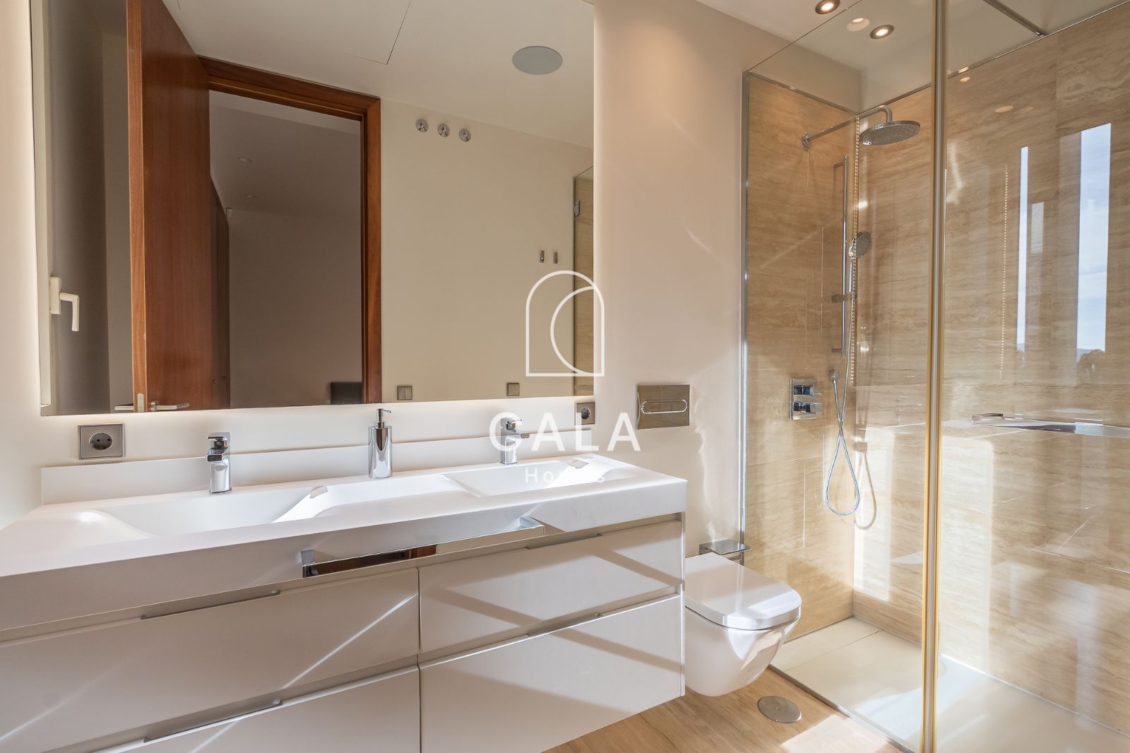 На верхнем этаже расположена роскошная главная спальня с открытой ванной комнатой, панорамной ванной, отдельным душем, гардеробной во всю высоту и частной террасой с послеобеденным солнцем. Ещё две спальни с ванными комнатами и встроенными шкафами завершают этот этаж.
