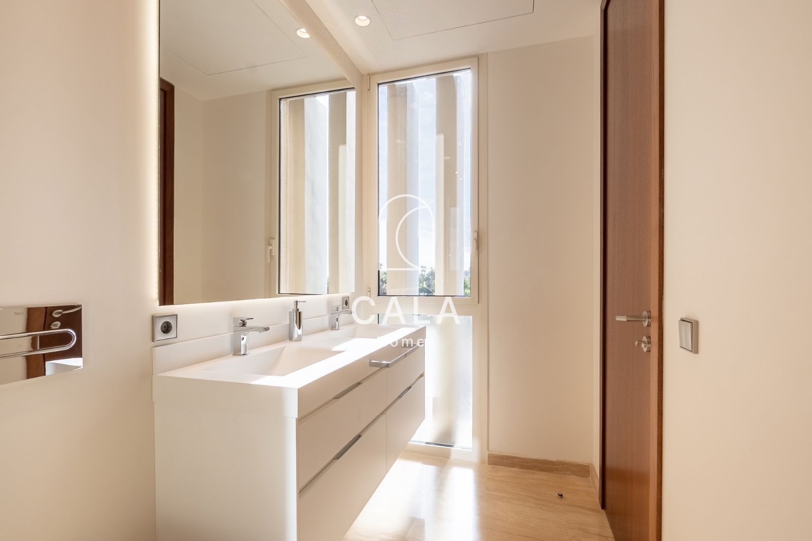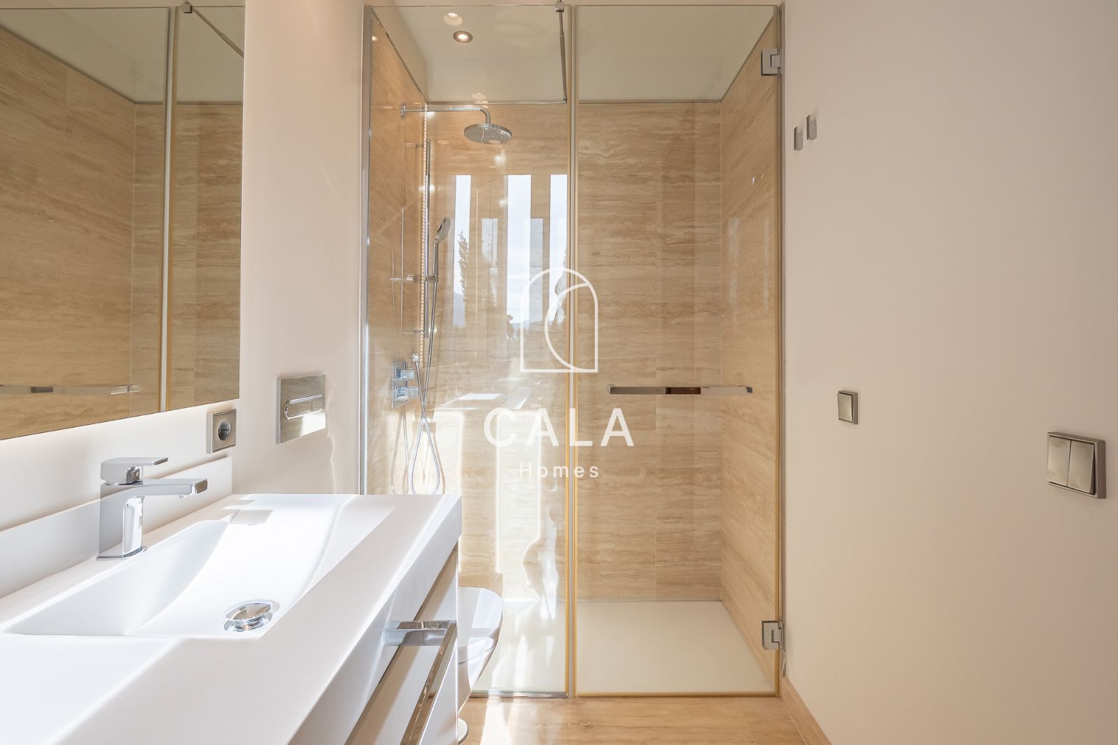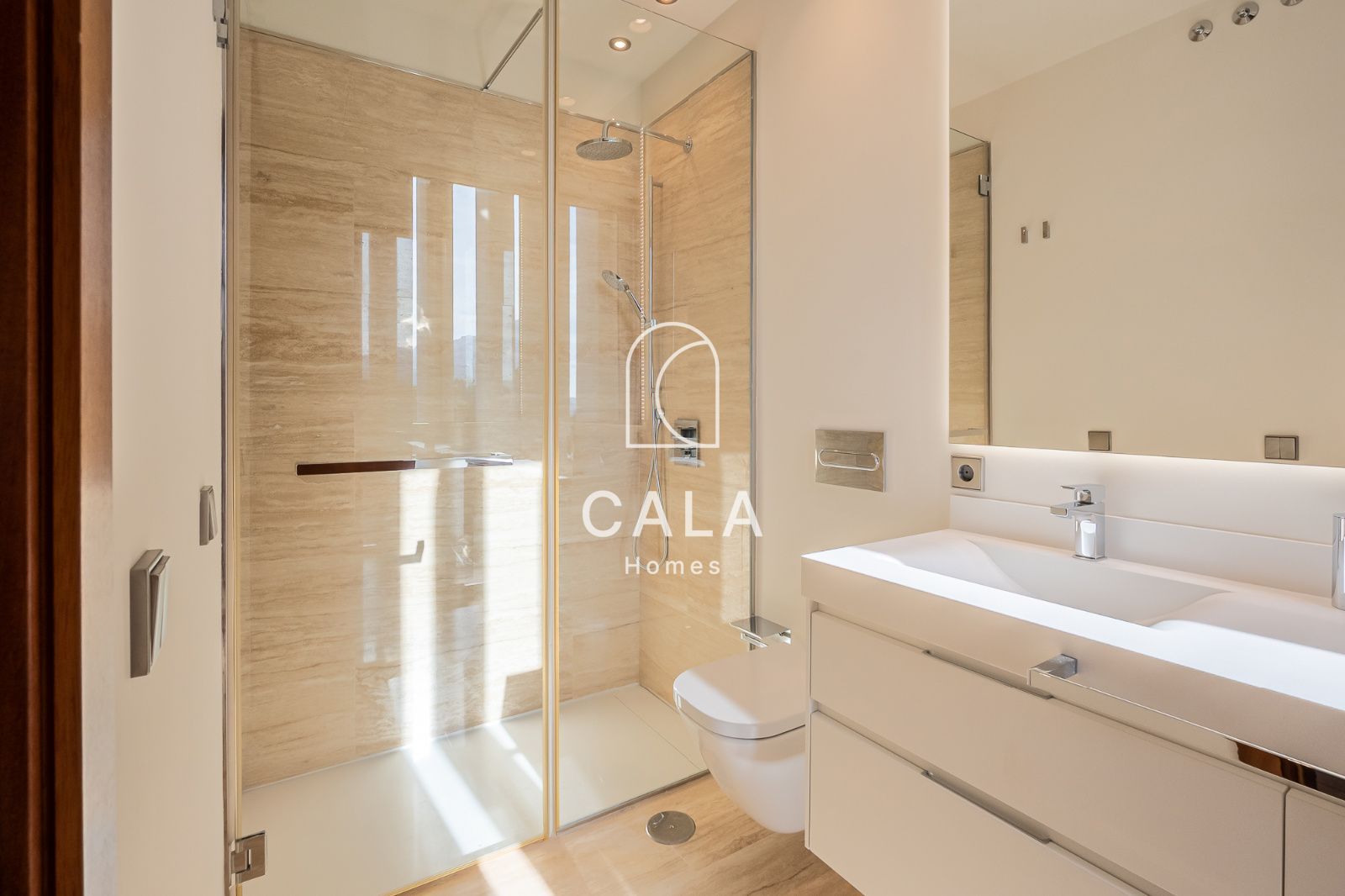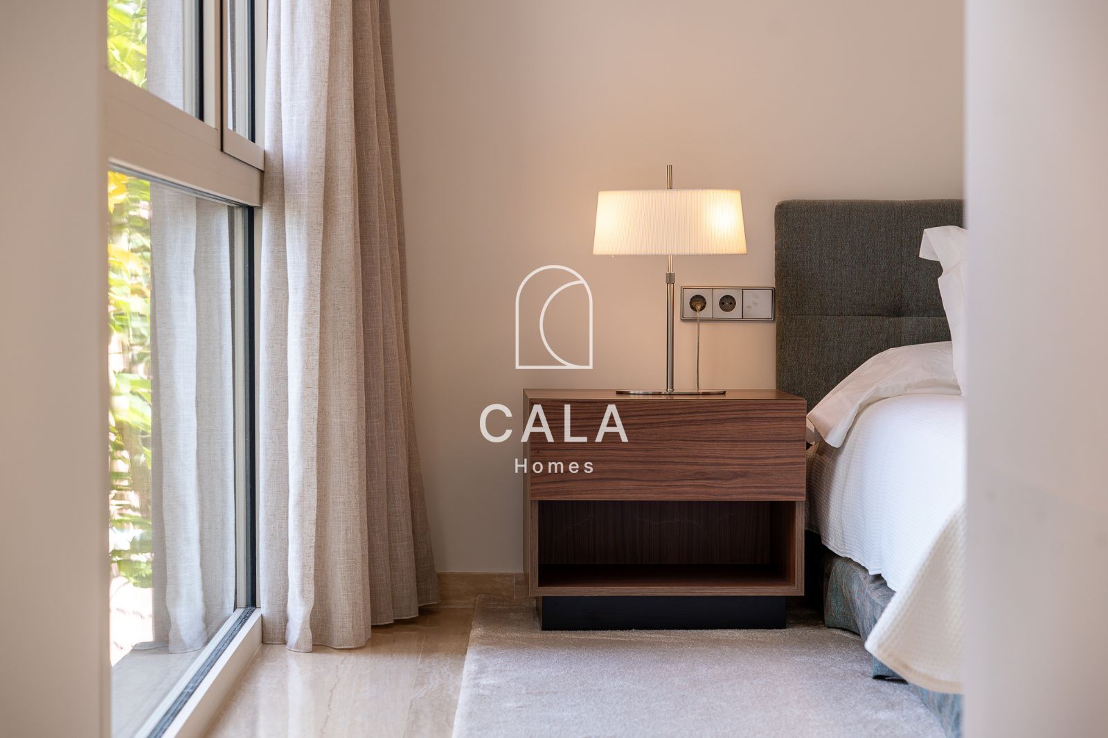 На верхнем этаже расположена роскошная главная спальня с открытой ванной комнатой, панорамной ванной, отдельным душем, гардеробной во всю высоту и частной террасой с послеобеденным солнцем. Ещё две спальни с ванными комнатами и встроенными шкафами завершают этот этаж.