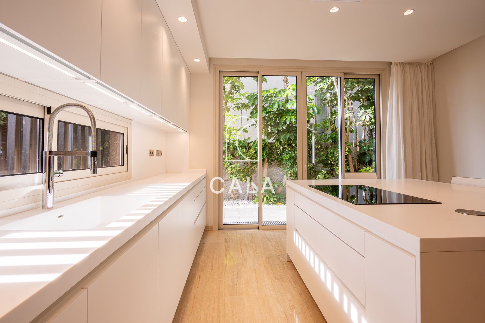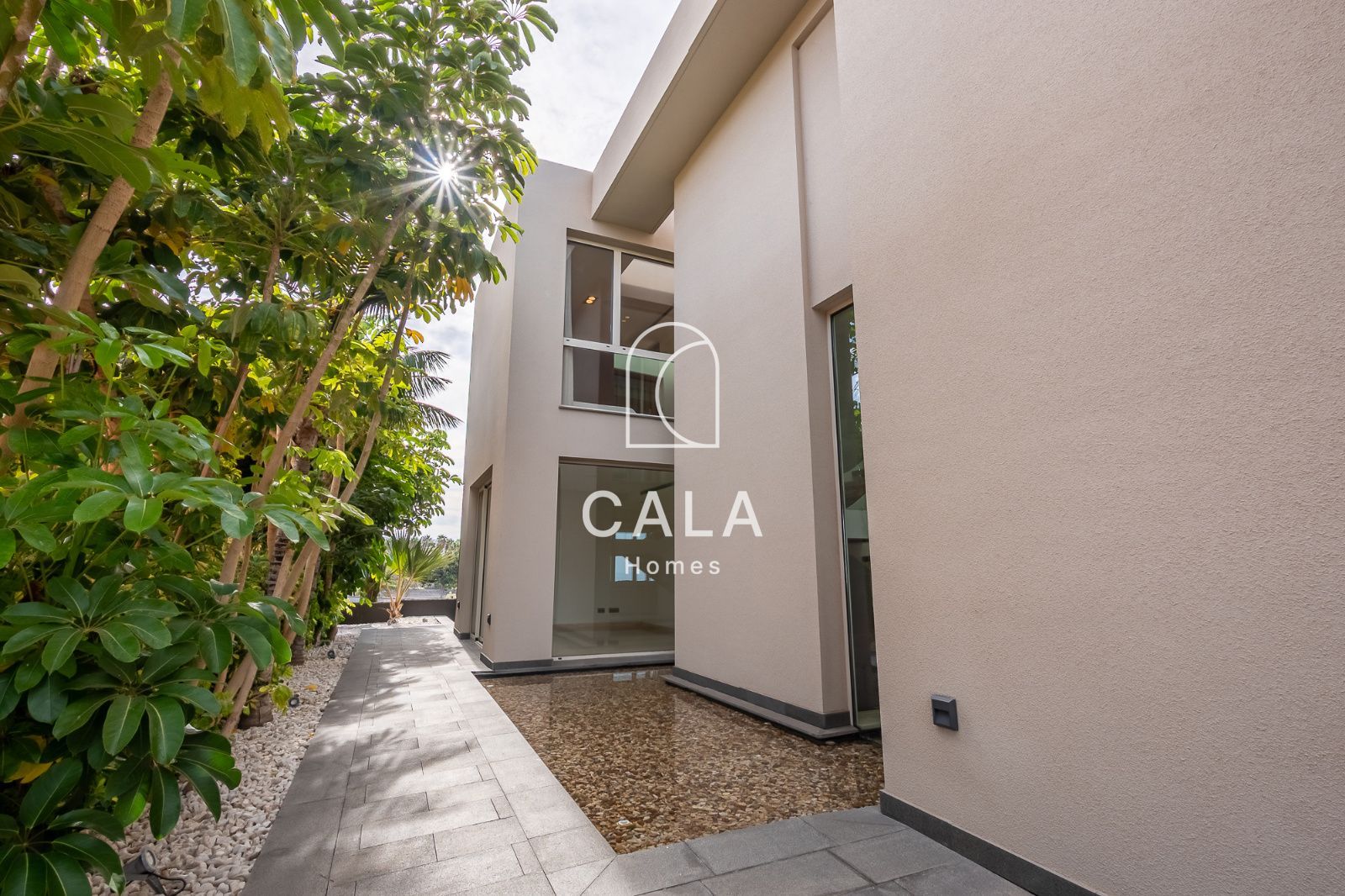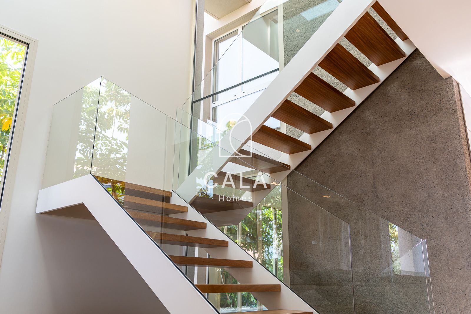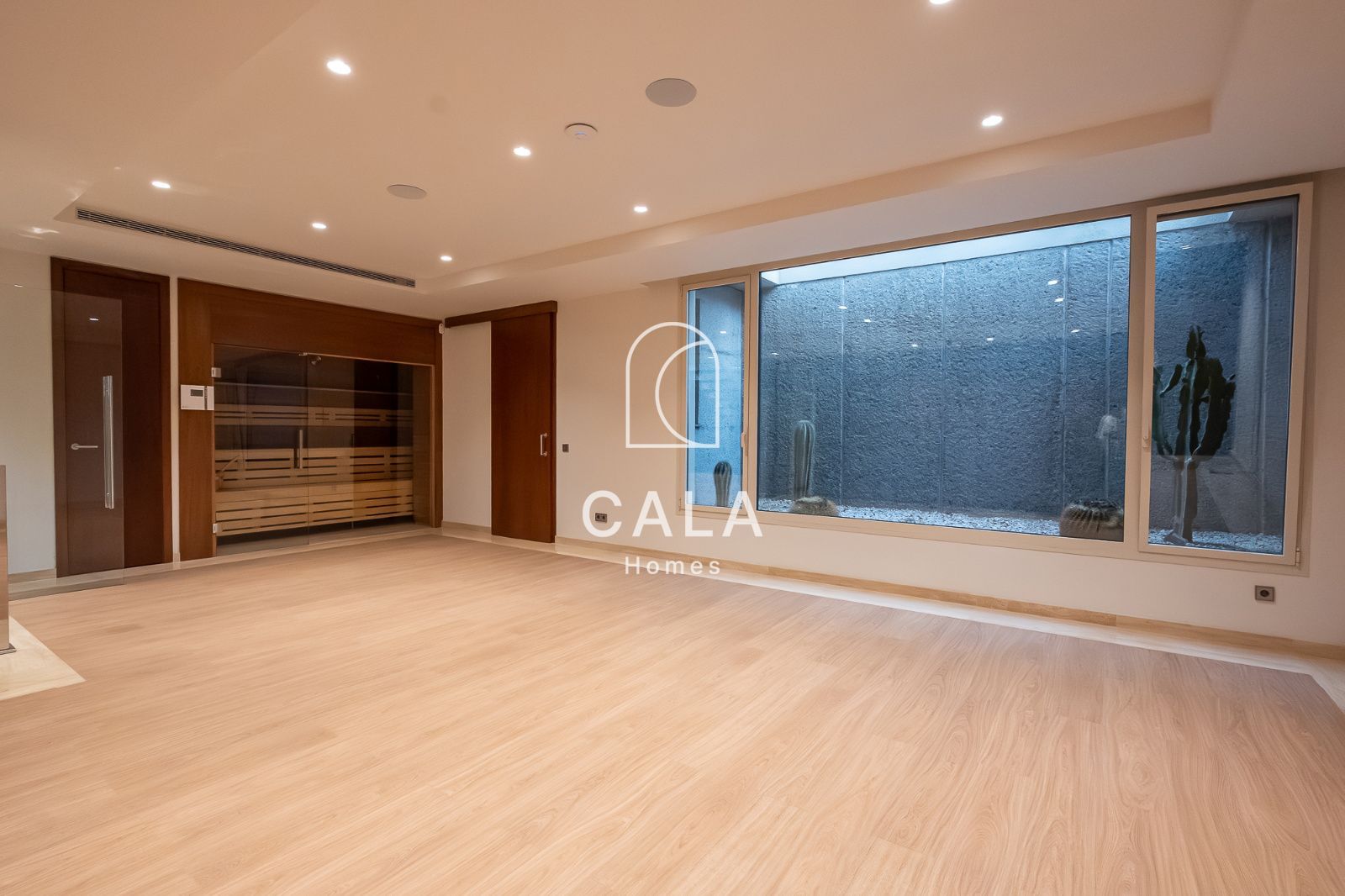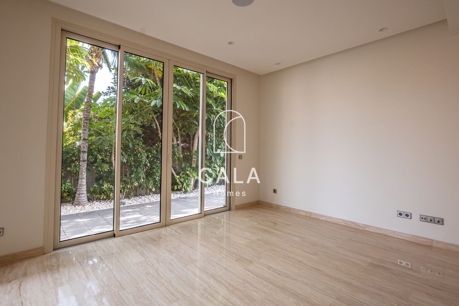 Вилла распределена на три этажа, соединённые лифтом, и окружена элегантным садом с пальмами и тропической растительностью, создающими атмосферу уединения и покоя. Главный этаж впечатляет просторными открытыми помещениями, высокими потолками и большими панорамными окнами, которые наполняют гостиную и столовую естественным светом и гармонично объединяют внутреннее и внешнее пространство. Гурмэ-кухня, оснащённая бытовой техникой NEFF премиум-класса и центральным островом, обращена к морю и является настоящим сердцем дома. С этого уровня открывается выход на главную террасу с зоной отдыха, садом и великолепным инфинити-бассейном с системой встречного течения.